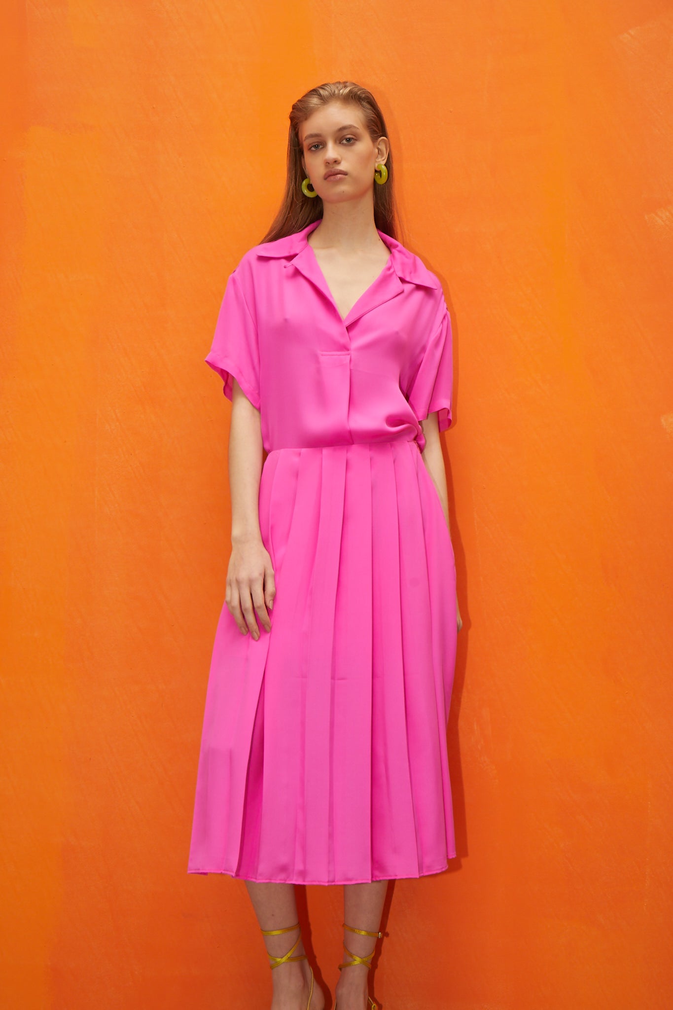Trendy pleated skirt made of 100% silk georgette. It stands out not only for its impeccable lines but also its delicate pleats. Add style to your look with this iconic item.