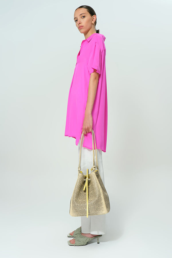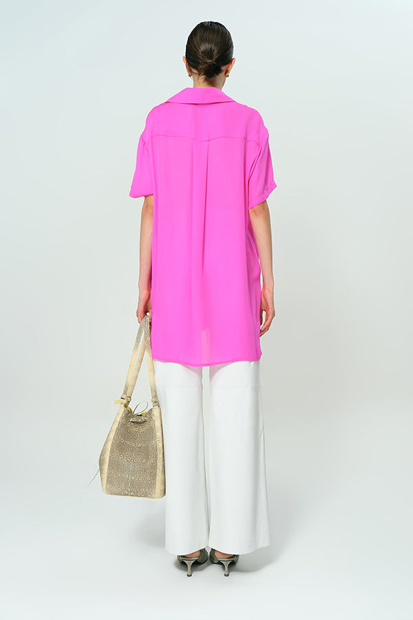 You will never be wrong using this classic short-sleeve shirt made of 100% silk georgette. It is the perfect everyday and business casual companion.