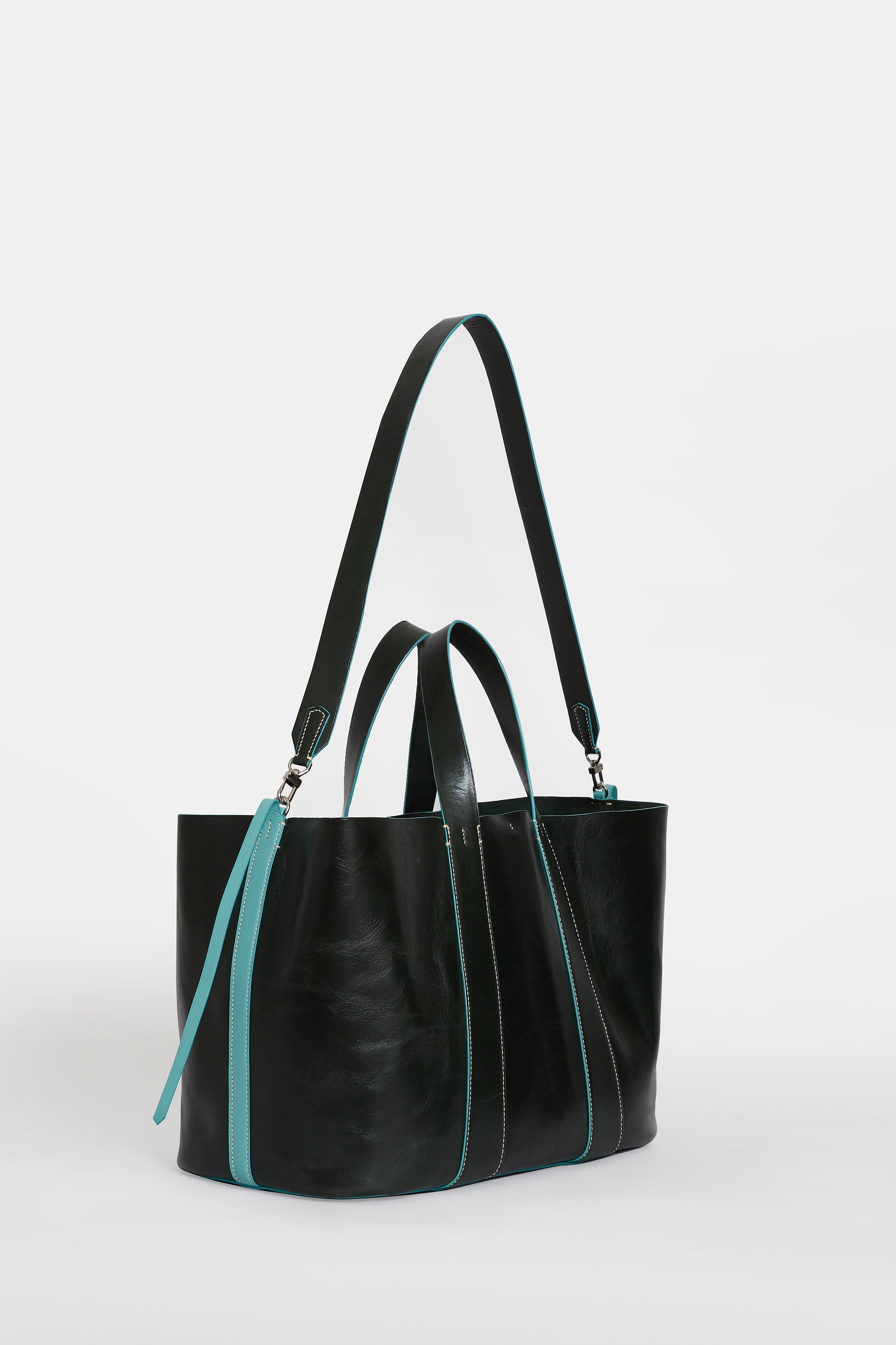 Destined to go places, this tote bag is the perfect travel companion. The interior boasts more than enough room for your daily essentials. Choose your color and enjoy the functionality of this pretty bag, entirely finished by hand and outfitted with nickel plated solid brass hardware.