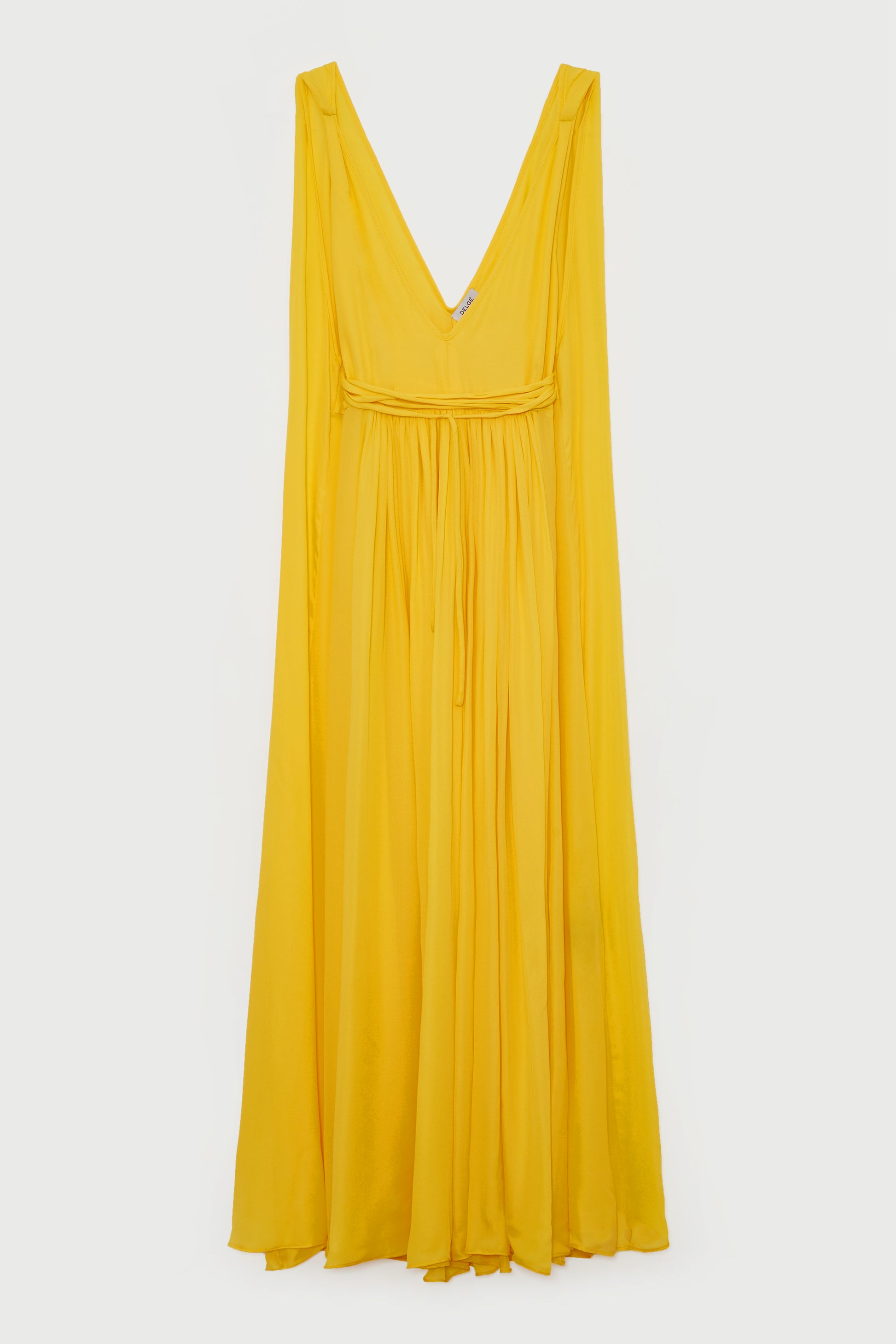 This stylish maxi dress is a great way to glam up your look. It Is made of delicate and pure silk georgette and falls perfectly on the wearer. You will be unforgettable in this charming dress.