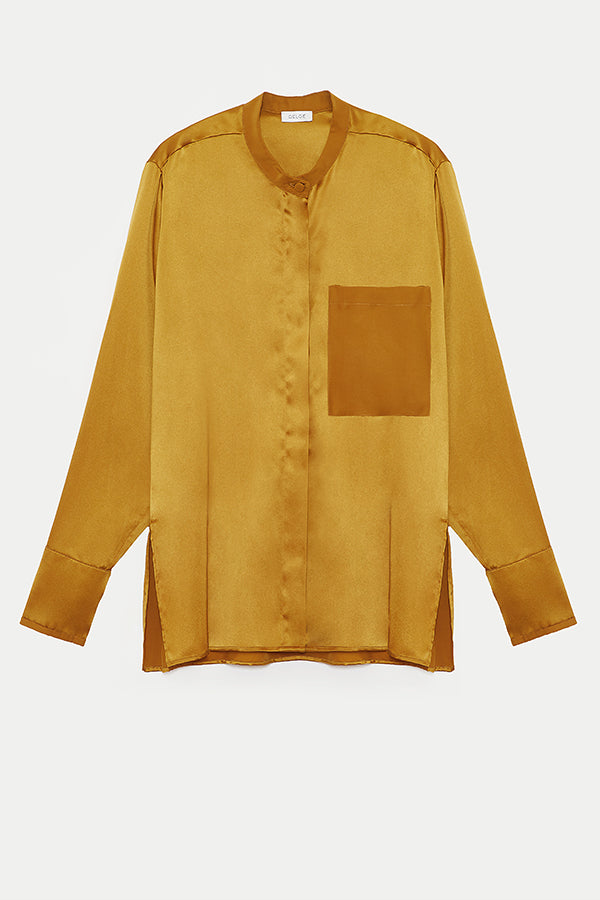 This elegant shirt is made of 100% silk charmeuse. Its delicate design gives a beautifully feminine charm for any occasion and looks good in any color and combination.