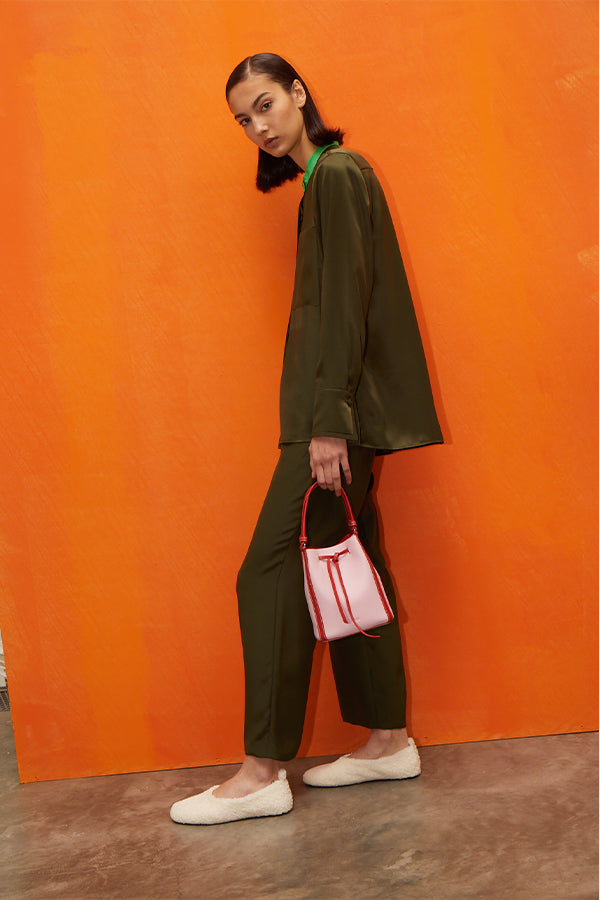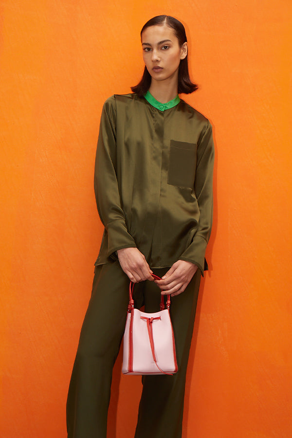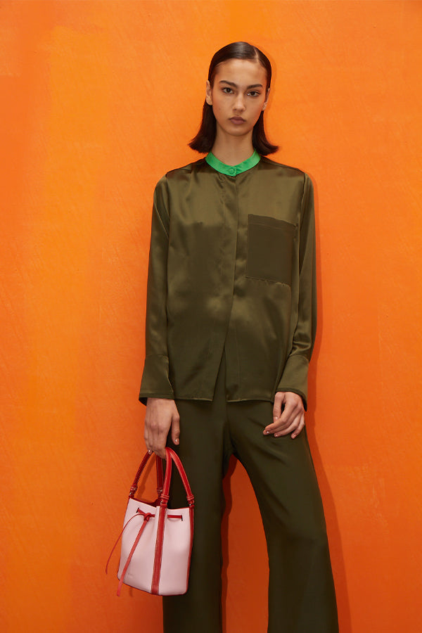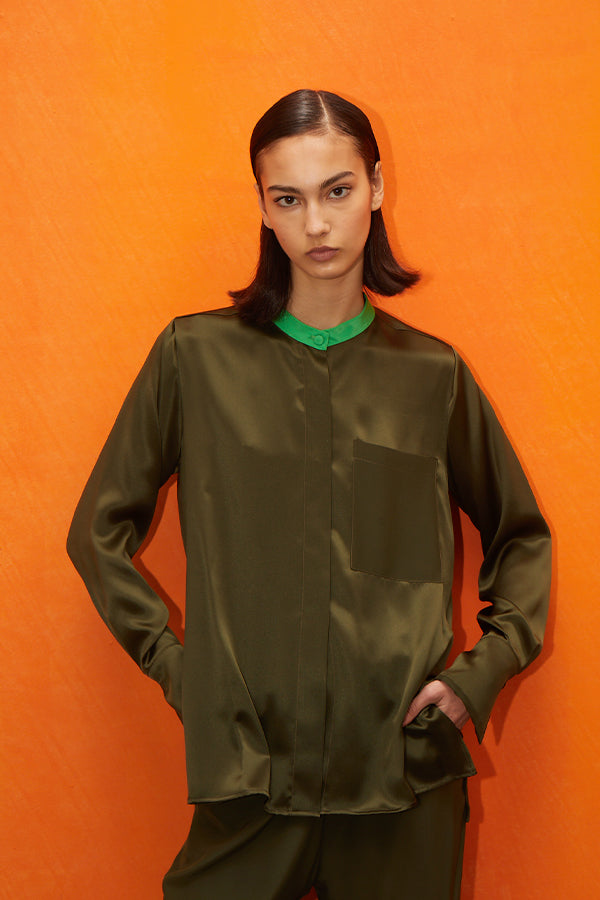 This elegant shirt is made of 100% silk charmeuse. Its delicate design gives a beautifully feminine charm for any occasion and looks good in any color and combination.
